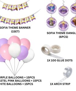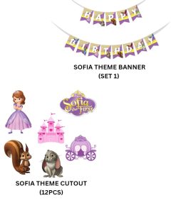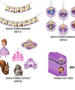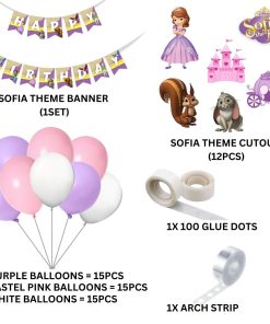 Sofia Theme Model 2 Birthday Kits – (6 Inches/250 GSM Cardstock/Purple , White & Pink/54Pcs)