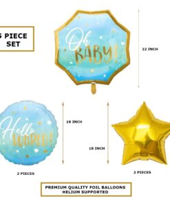 Oh Baby Blue Foil Balloon Hello World Welcome New Born Baby Decorative Foil Balloon Set of 5