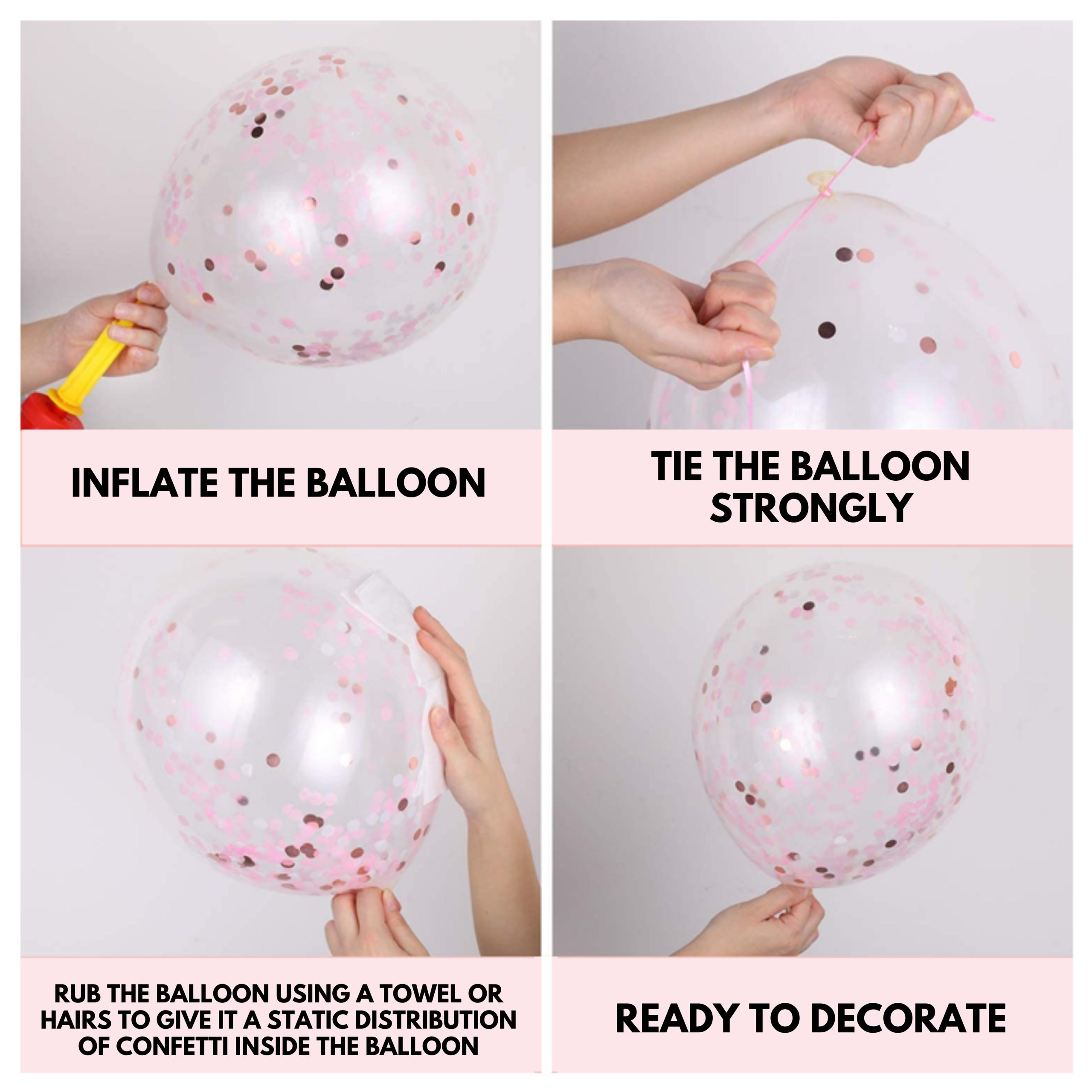 Inflate the foil balloons using a straw and paste using glue drop provided within the kit.