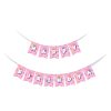 This banner can be used to decorate birthday parties of any age group themed in Pink or white colours.