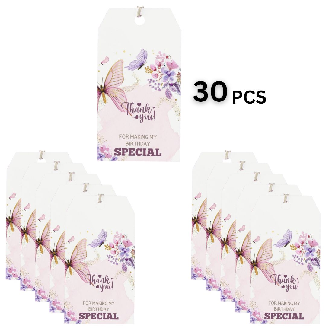 Introducing our Butterfly Favor Tags, the perfect addition to your Butterfly -themed celebration! These 30 pieces of beautifully crafted tags are made with high-quality 250gsm cardstock paper and are designed to add a touch of charm to any gift or favor.