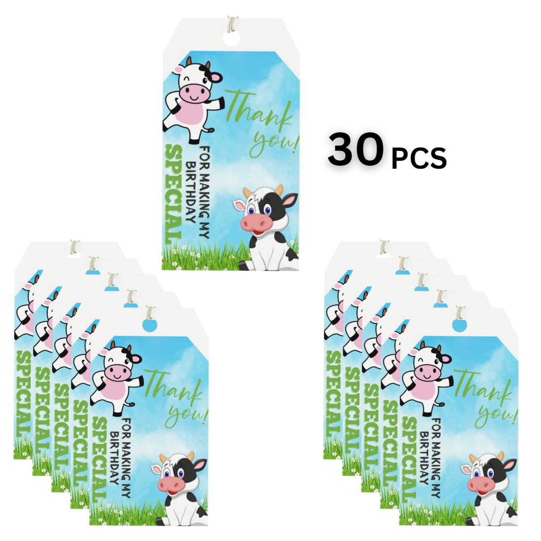 • Set of 30 Cow themed favor tags