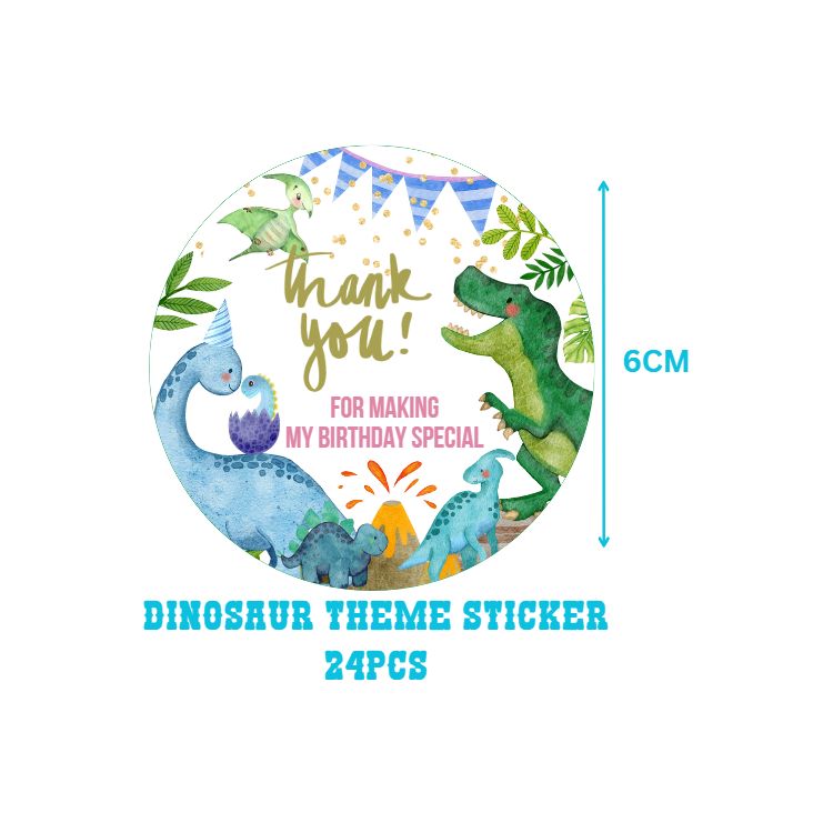 Party Decor Mall return gift stickers are a fun and creative way to personalize party favors and thank you gifts, Dinosaur designs to suit different occasions and preferences.