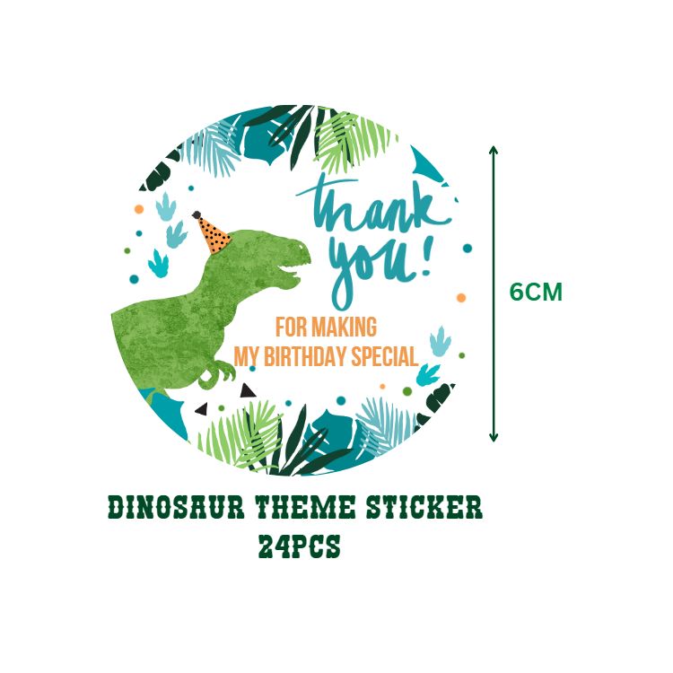 Party Decor Mall return gift stickers are a fun and creative way to personalize party favors and thank you gifts, Dinosaur designs to suit different occasions and preferences.