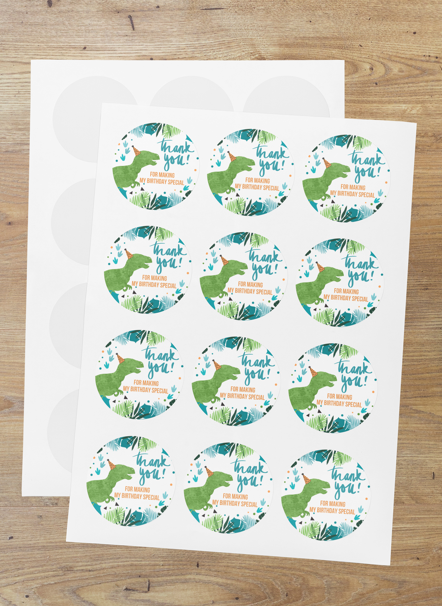 Theme Dinosaur Return gift stickers are small adhesive labels that are used to mark and personalize gift bags or boxes that are given as party favors or thank you gifts. The product content of return gift stickers typically includes:
