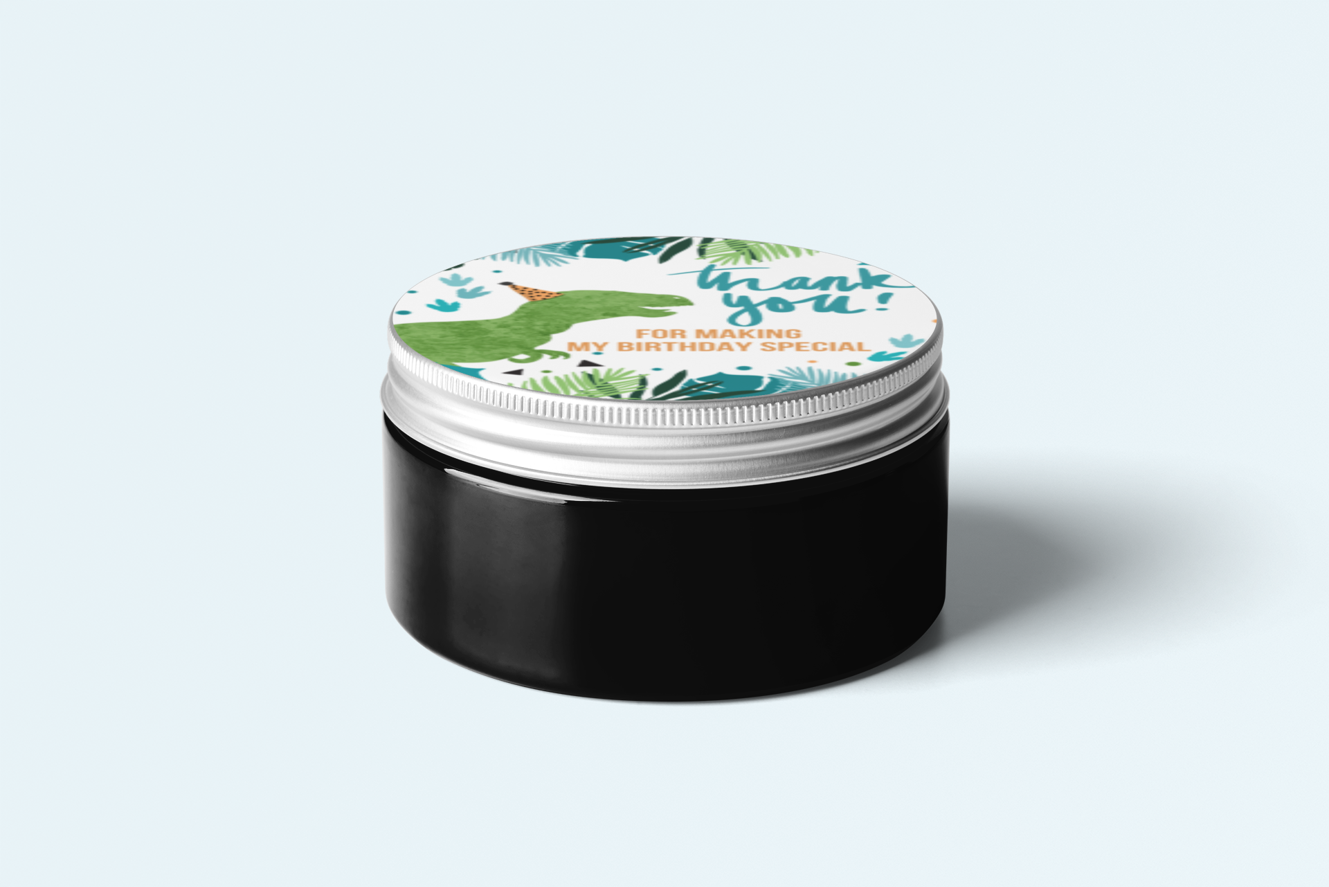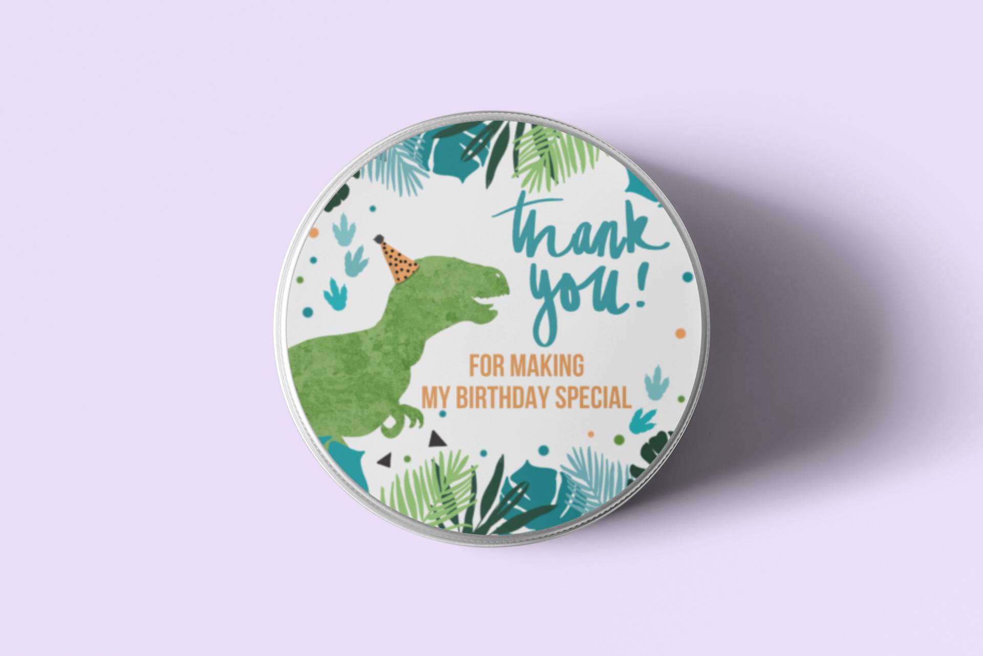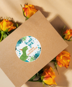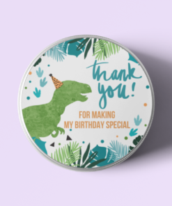 Design: Return gift stickers come in a circular shaped Dinosaur design. The designs comes with Dinosaur and simple text such as “Thank you” or “Happy Birthday” written on it.