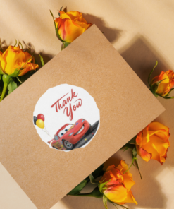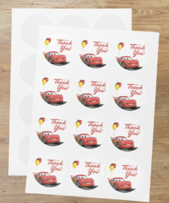 Party Decor Mall return gift stickers are a fun and creative way to personalize party favors and thank you gifts, Disney Car designs to suit different occasions and preferences.