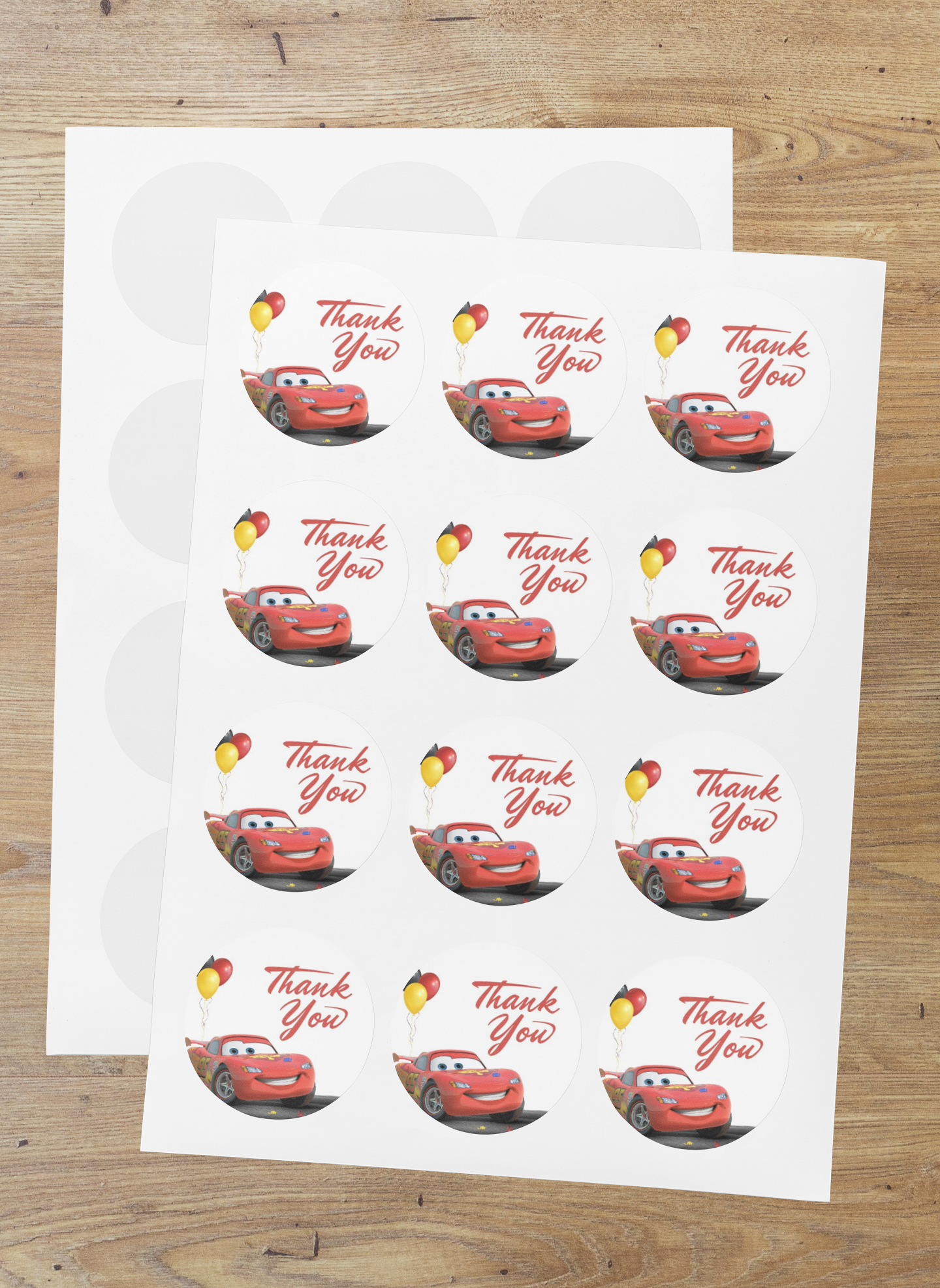 Disney Car Theme- Return Gift/birthday decor Thankyou Sticker (6 CM/Sticker/Multicolour/24Pcs)