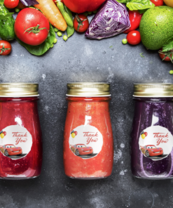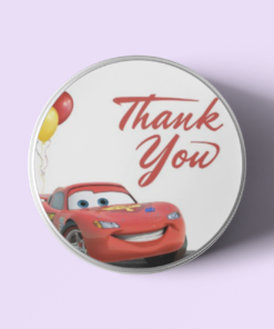 Design: Return gift stickers come in a circular shaped Disney Car design. The designs comes with Disney Car and simple text such as “Thank you” or “Happy Birthday” written on it.