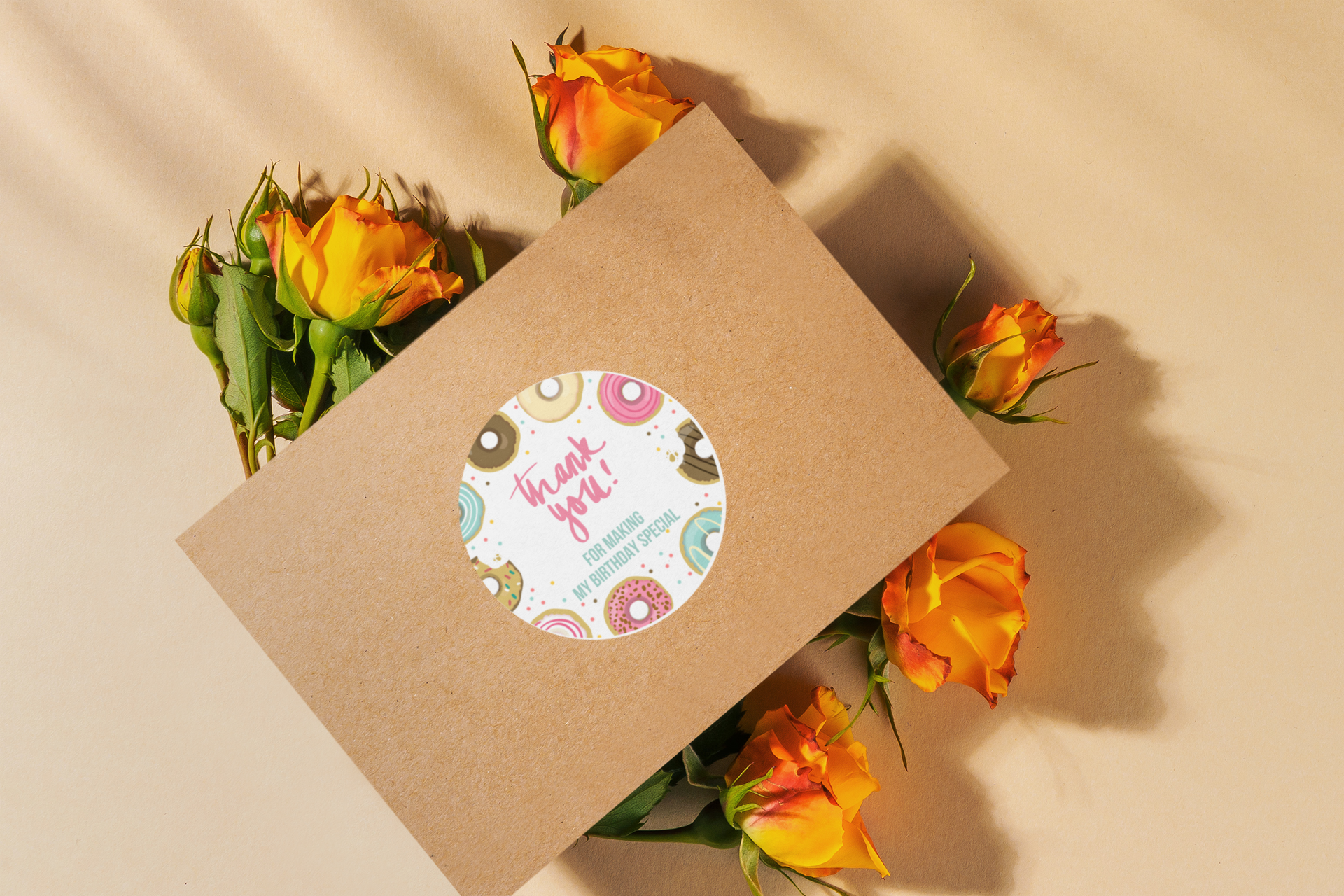 Theme Doughnut Return gift stickers are small adhesive labels that are used to mark and personalize gift bags or boxes that are given as party favors or thank you gifts. The product content of return gift stickers typically includes: