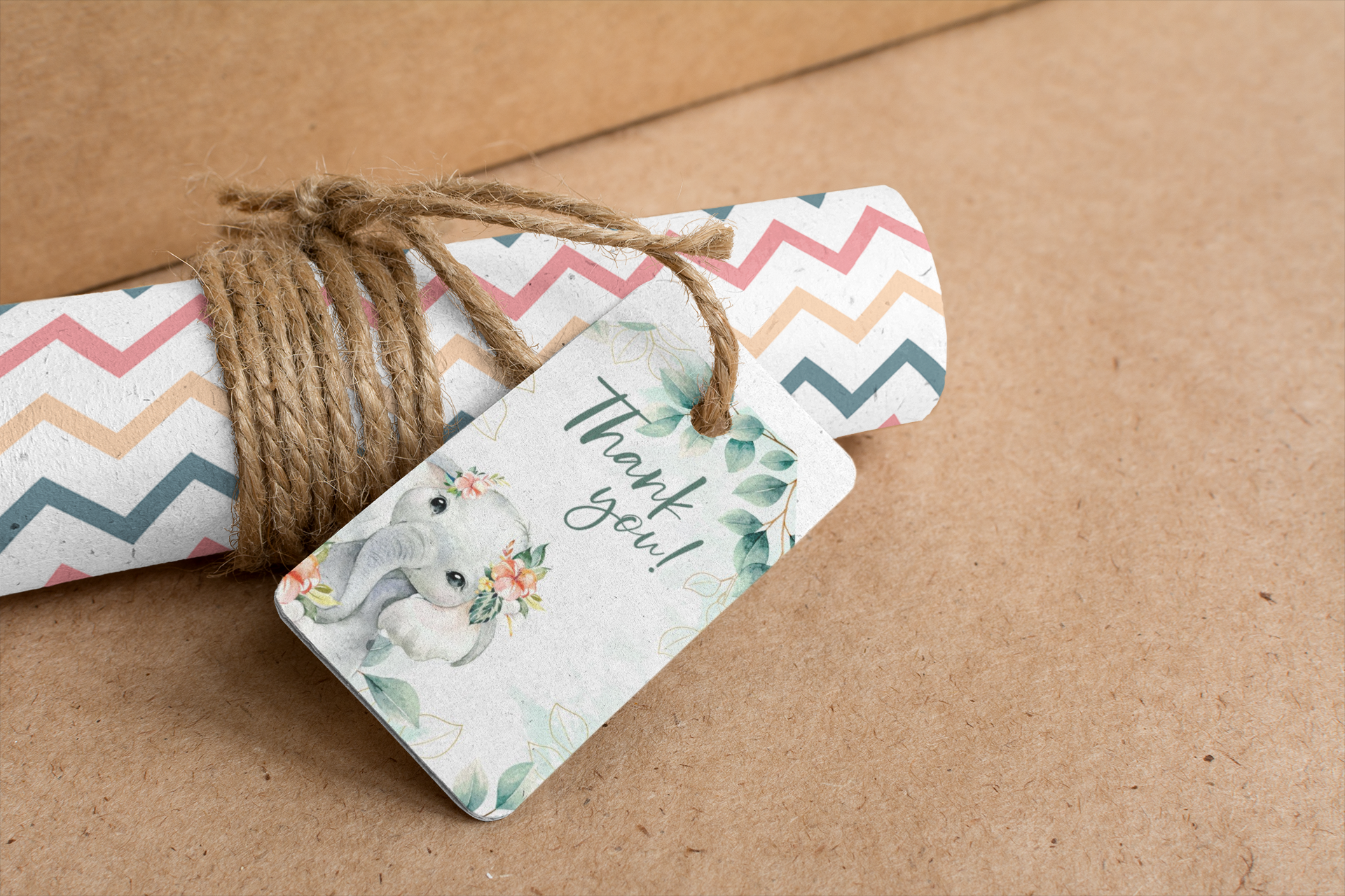 Introducing our Elephant Favor Tags, the perfect addition to your Elephant -themed celebration! These 30 pieces of beautifully crafted tags are made with high-quality 250gsm cardstock paper and are designed to add a touch of charm to any gift or favor.