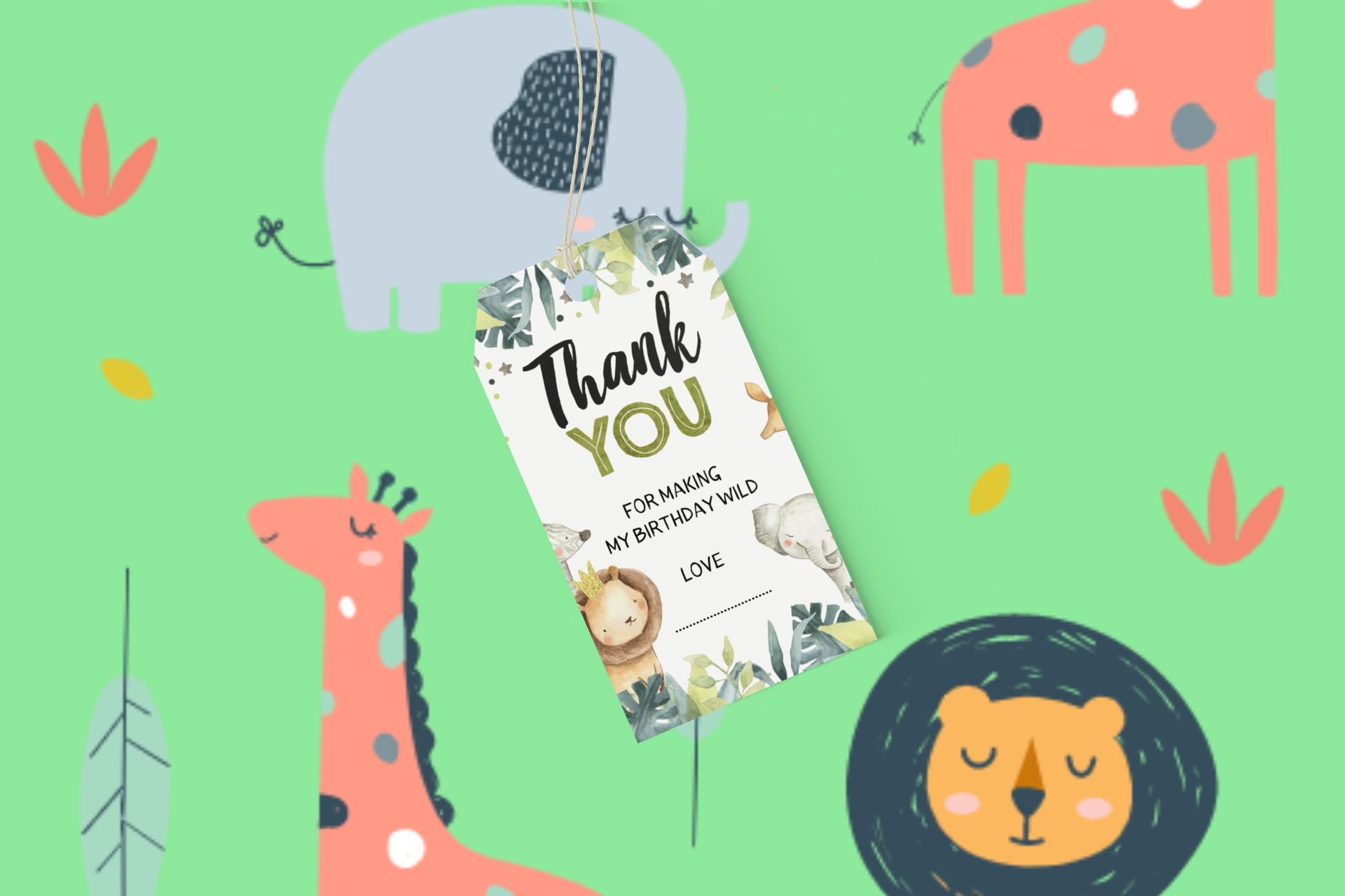 Jungle Theme Birthday Favour Tags – model 1 (2 x 3.5 inches/250 GSM Cardstock/Multicolour/30Pcs)