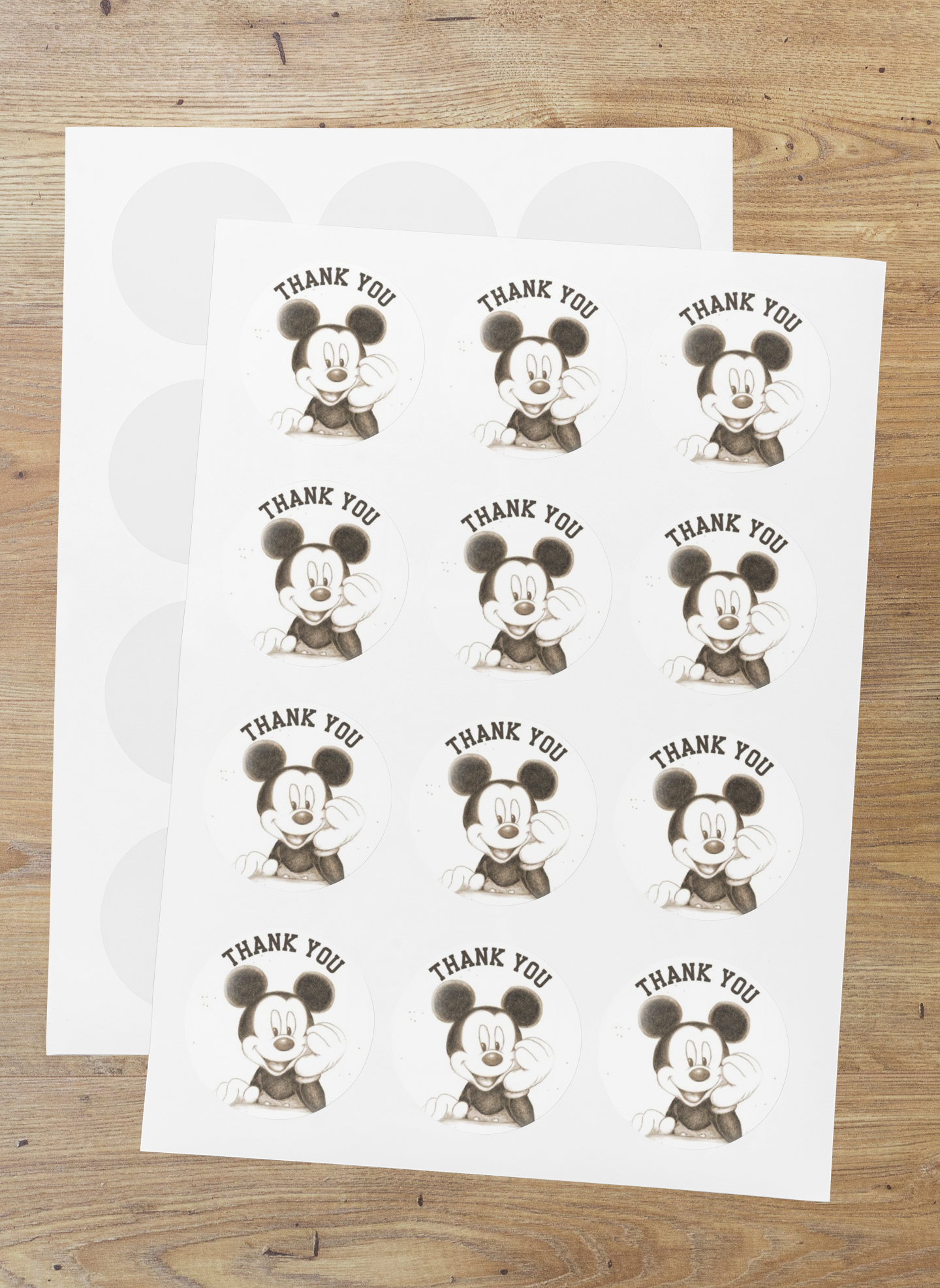 Mickey Mouse Theme- Return Gift/birthday decor Thankyou Sticker (6 CM/Sticker/Black & White/24Pcs)