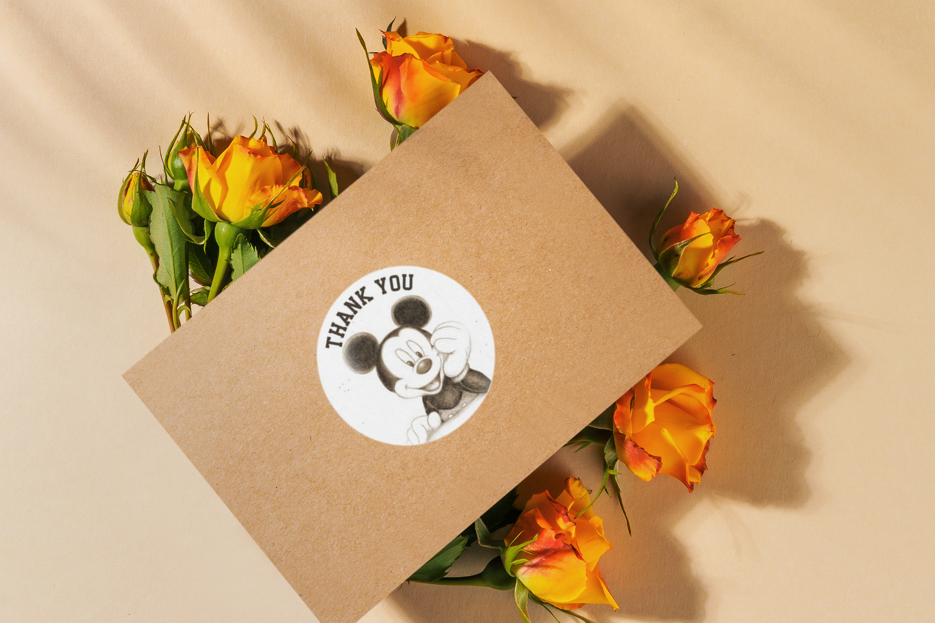 Party Decor Mall return gift stickers are a fun and creative way to personalize party favors and thank you gifts, Mickey Mouse designs to suit different occasions and preferences.