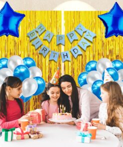 • 【What You Will Get】: We have covered everything for Birthday decorations for boys, girls party. This complete garland set contains 13PCS Happy Birthday Banner 10″ 10 PCS Metallic White, 10″ 10PCS Metallic Blue ,18″ 2PCS Blue Star & 2 PCS Gold Fringe Curtain. We have saved your time and money rather than having to search around and buy.
