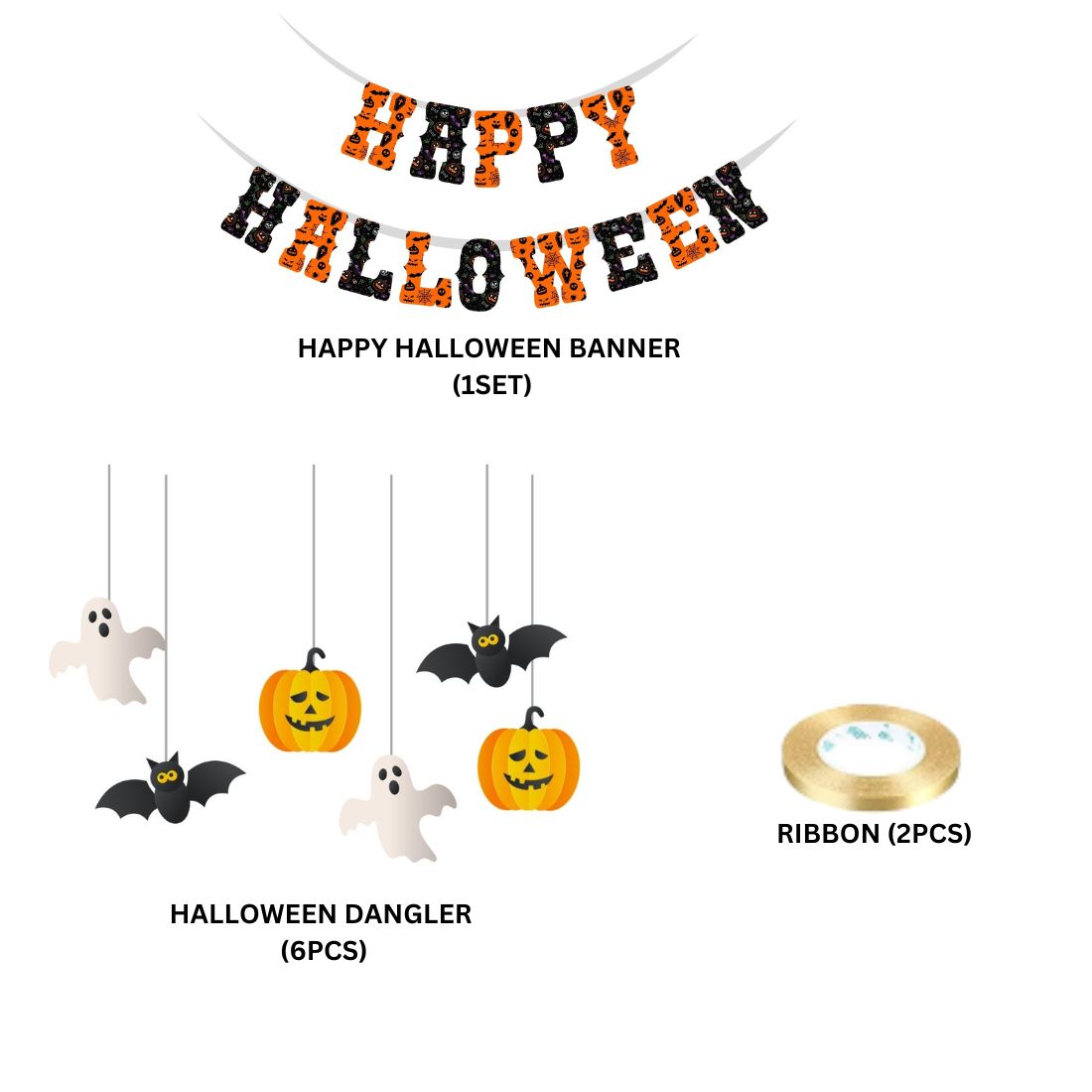 Halloween Banner and Dangler – (6 inches/250 GSM Cardstock/Orange, White, Black, Yellow, 20 Pieces)