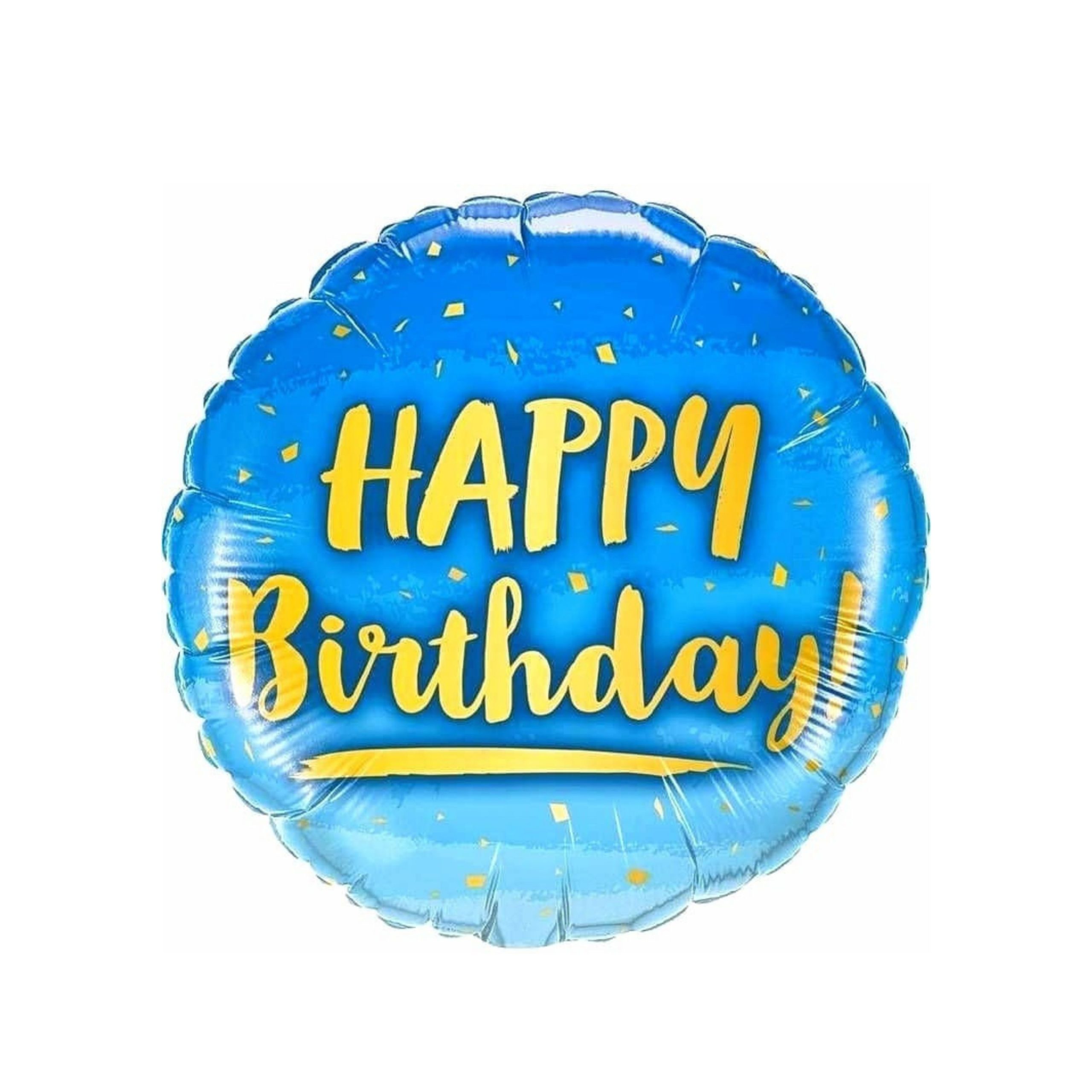 Party Decor Mall – Printed Round Shape Blue Happy Birthday Foil Balloon
