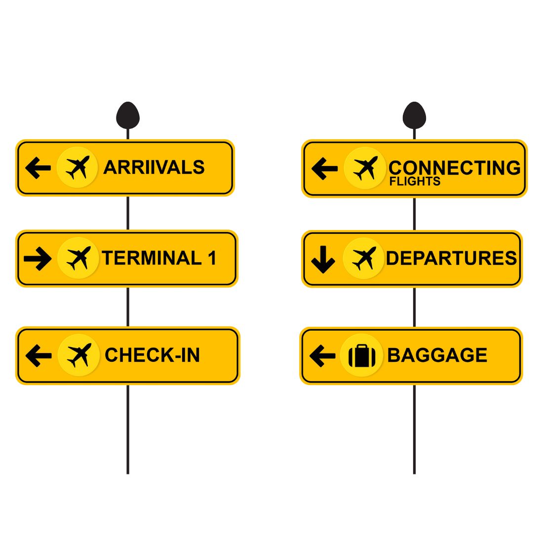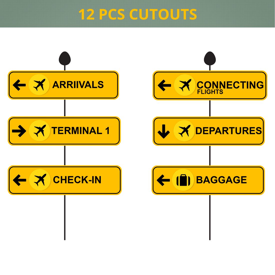 Airports Sign Boards Cut Outs (12 Pcs)
