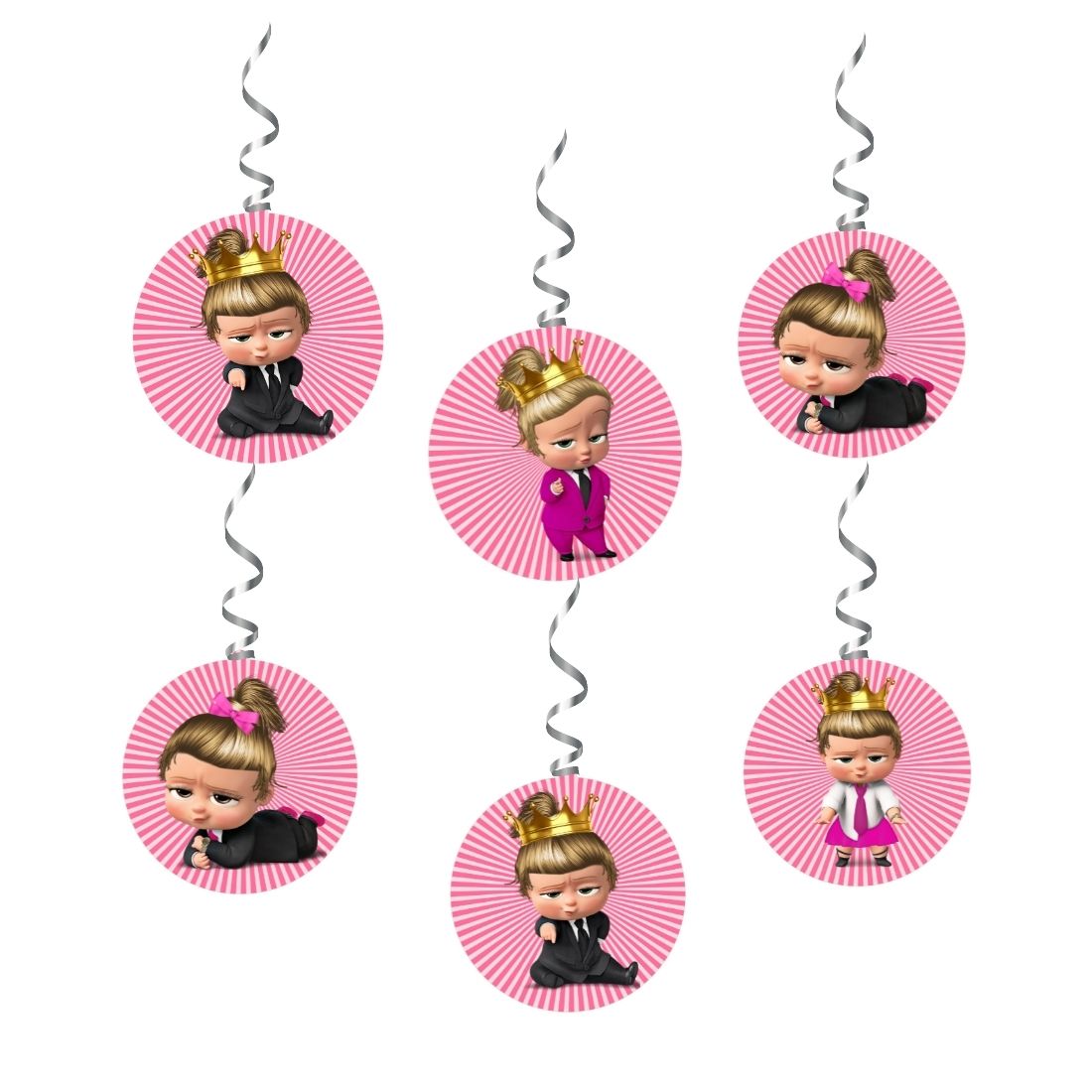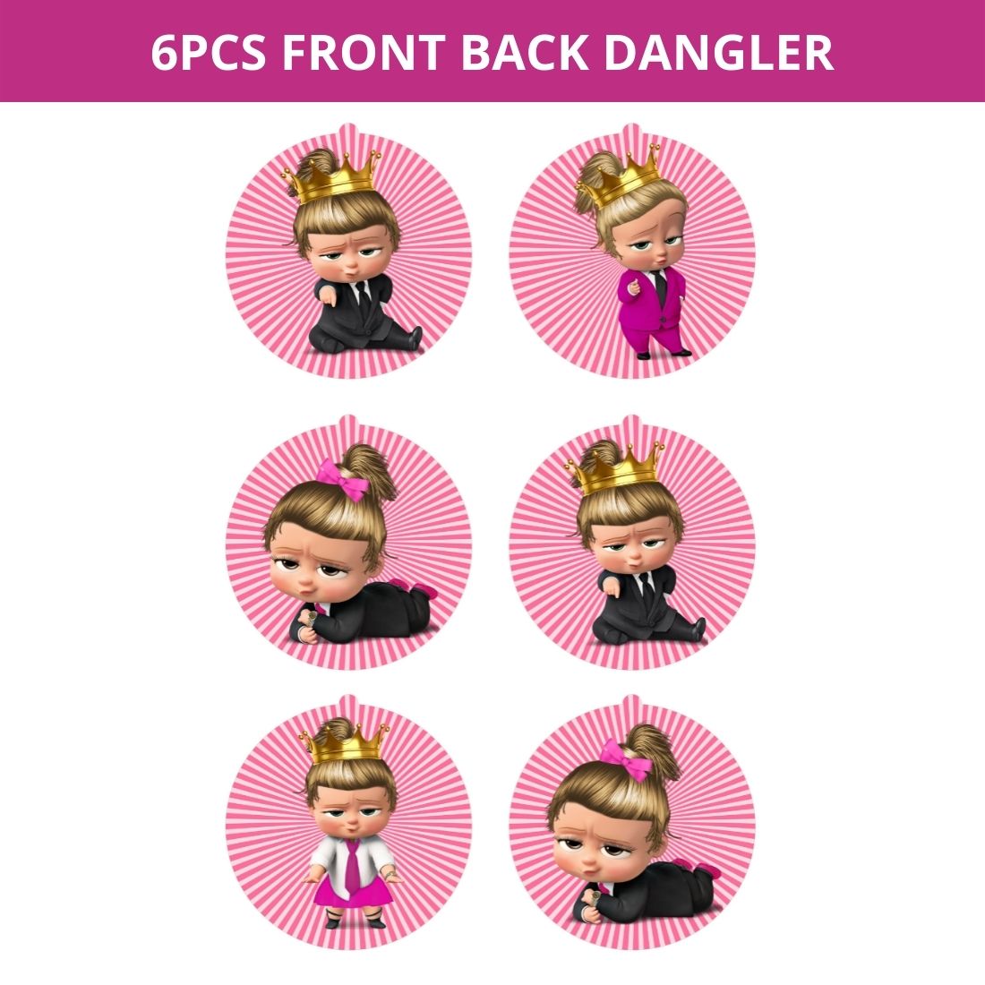 Boss Baby Girl Theme Hanging Danglers – Set of 6, Double-Sided Prints, 6 Inches Each with Hanging Ribbon