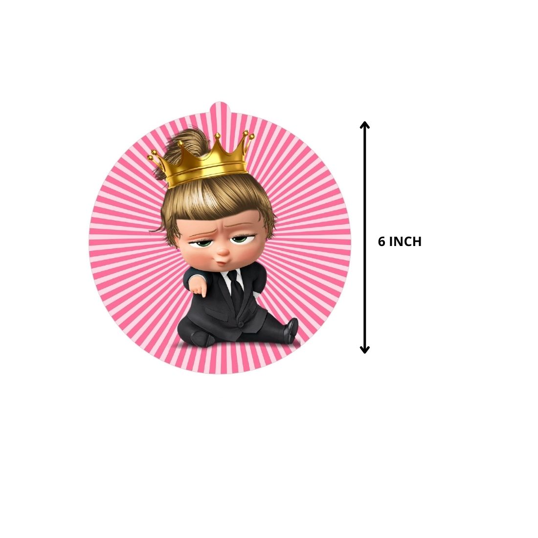 Create a captivating Boss Baby Girl -themed atmosphere at your birthday party with our Boss Baby Girl Theme Hanging Danglers. This set of 6 danglers features charming designs inspired by the adorable Boss Baby Girl characters, each 6 inches in size, with delightful double-sided prints. Enjoy a 360-degree view of the Boss Baby Girl magic from any angle.ÂThe complete set of 6 hanging danglers is perfect for transforming any party space into an exciting Boss Baby Girl wonderland. Hang them around the room or above the party table to add a touch of magic and bring the Boss Baby Girl theme to life.ÂSetup is a breeze with the included hanging ribbons. Each dangler comes with a convenient ribbon for easy hanging, allowing you to spend more time celebrating and less time on decorations.ÂNot limited to birthdays, our Boss Baby Girl Theme Hanging Danglers are versatile and ideal for playdates, baby showers, and any event that calls for a touch of playful adventure. Ignite imaginations and create lasting memories with these delightful decorations.ÂEnhance the magic of your Boss Baby Girl theme celebration with our captivating Boss Baby Girl Theme Hanging Danglers. Let the little ones dive into a world of excitement and imagination.