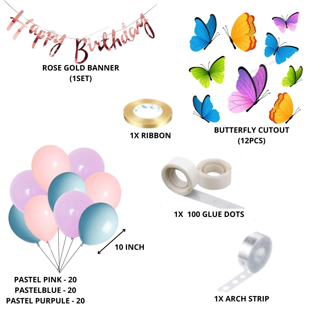 Butterfly Theme Birthday Balloon Decoration DIY Kit (76 Pcs)