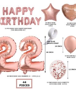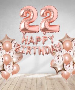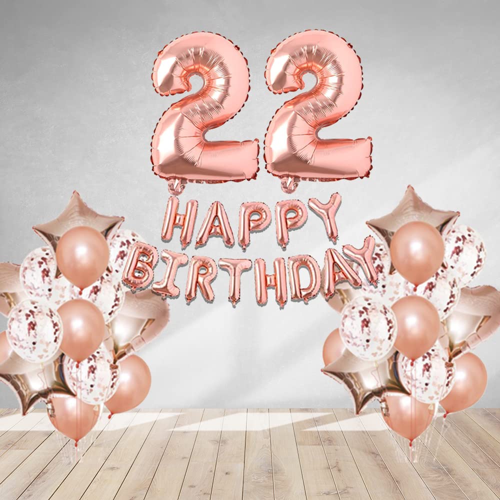 Rosegold Birthday Decor Metallic Balloon, Confetti, Star Foil Balloon, Heart Foil Balloon, Foil Happy Birthday & foil Number (22)
