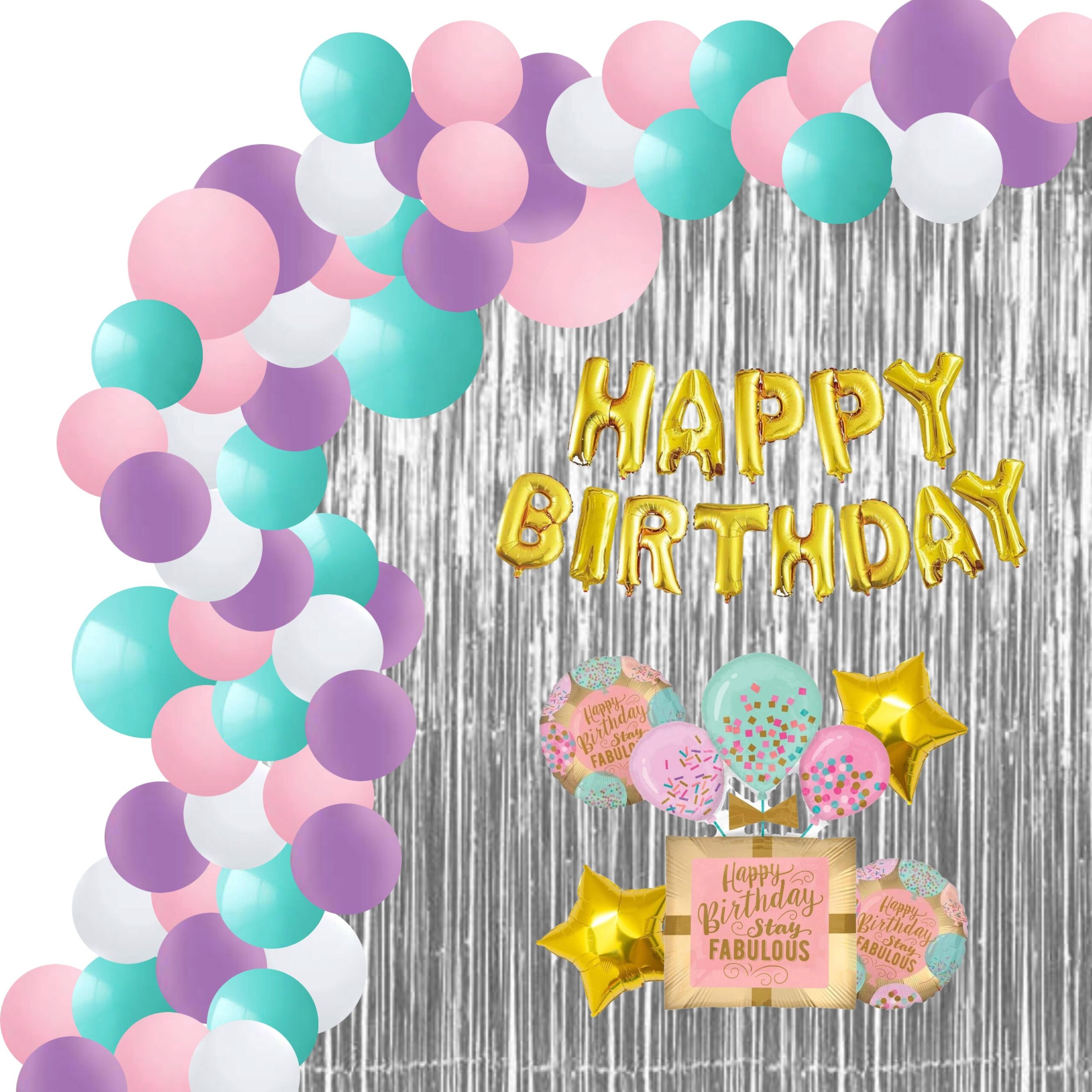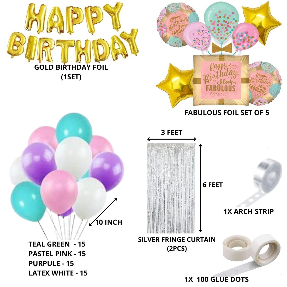Stay Fabulous Birthday Decoration Kit W Fringe Curtain(82 Pieces)
