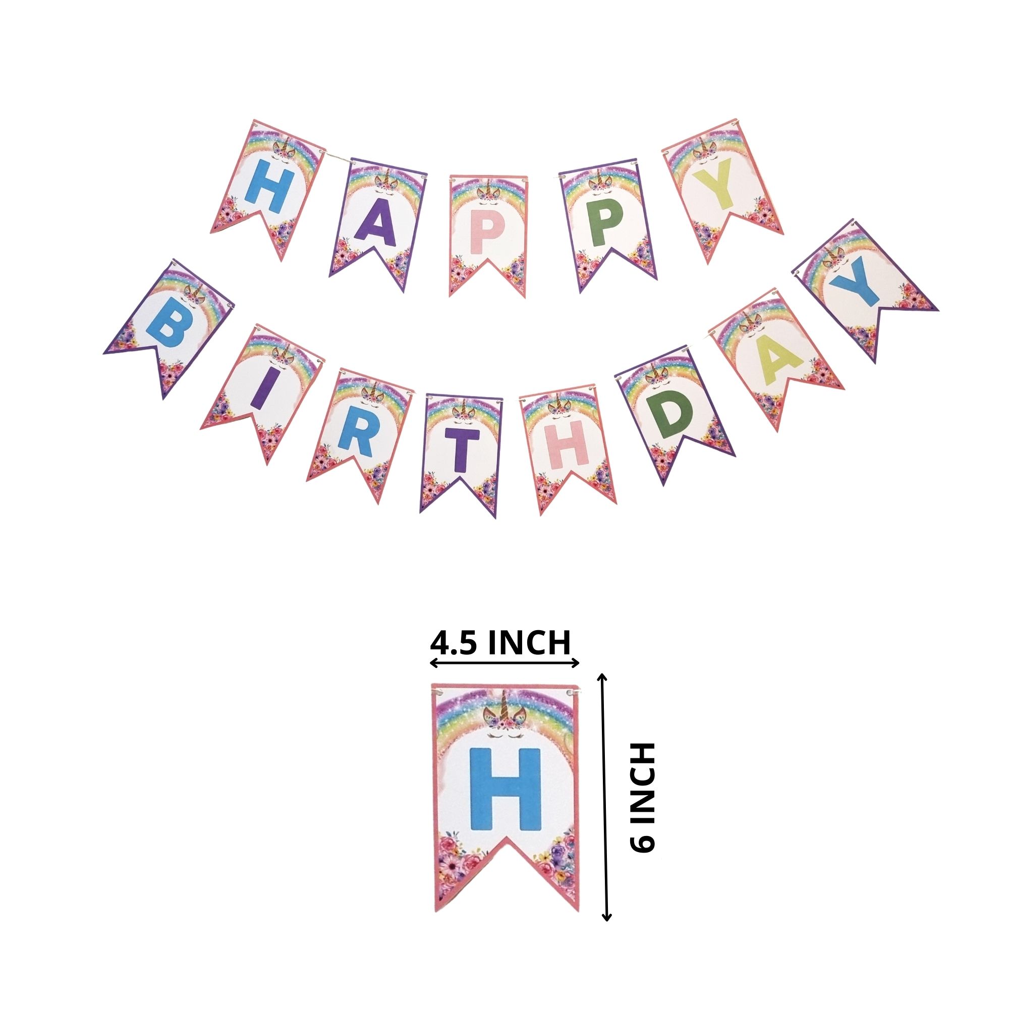 The Unicorn birthday banners are made up of eco-friendly 250 GSM cardstock material which is sturdy enough to be used multiple times. Each alphabet or character are individually packed with a ribbon along with, you may DIY and complete the banner by putting the ribbon in the holes in the character’s leaf and then paste it on the wall or backdrop as required. This process may hardly take 5 minutes or less.