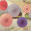 Set of 6 Paper Fans This set of 6 piece multi colour design fan flowers which is made of high quality art paper, Open fan and pin it using u pin and hang on ceiling or stick it to window or wall ,Wonderful decoration set for home such as wall and window, and also stage background, shop window lay out and dress ornament,Especially suitable for birthday party, festival window display, baby shower and other occasions, Made of Eco-superior thick art paper, attractive and durable.