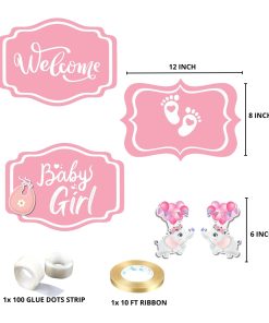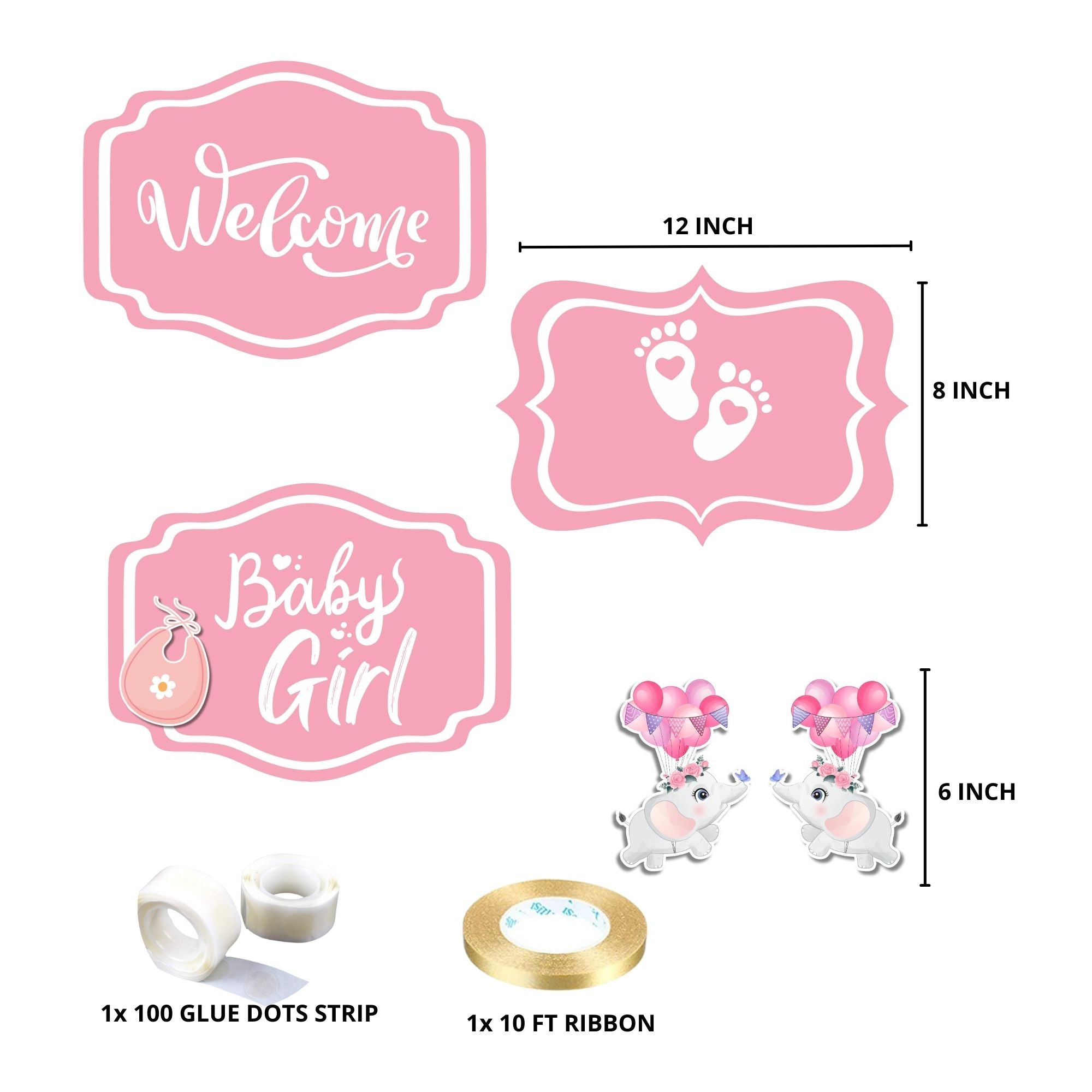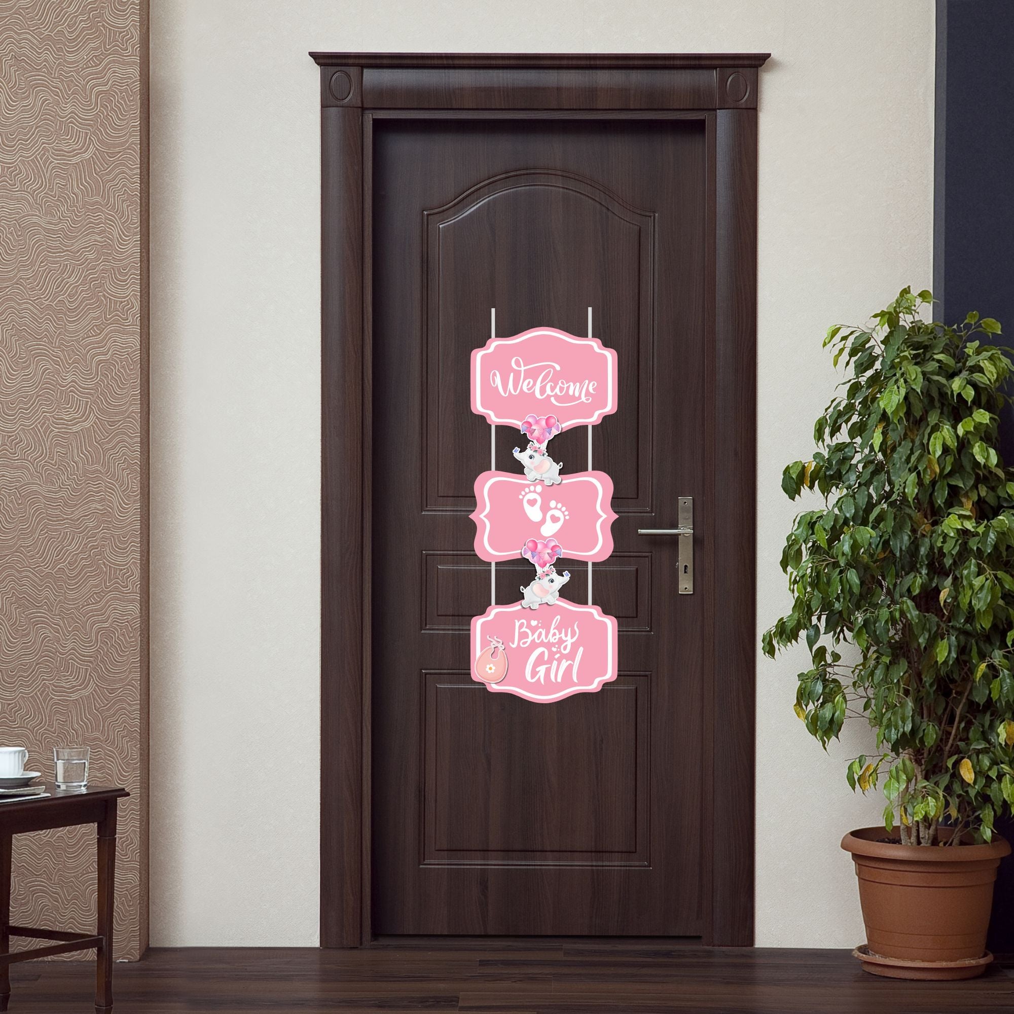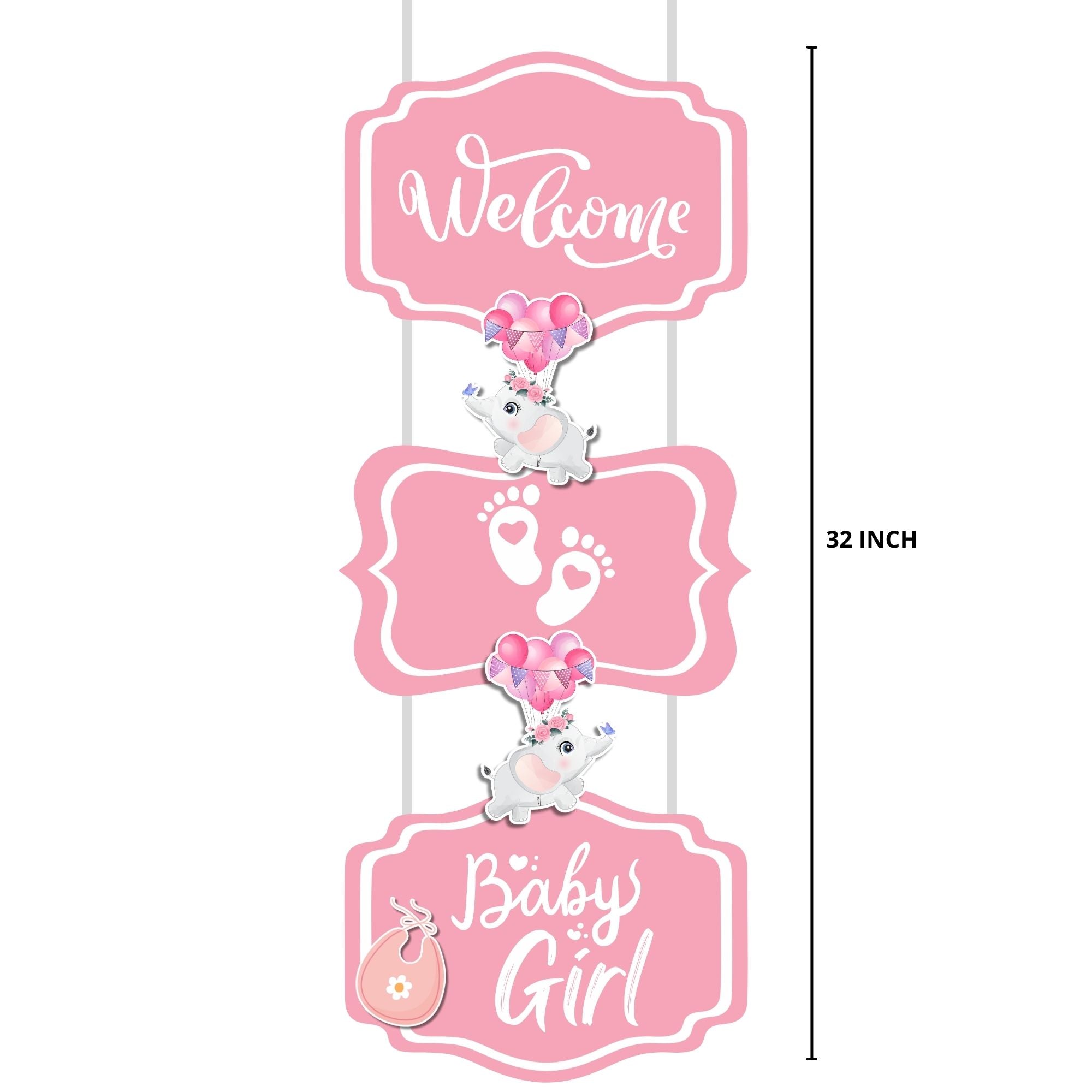 Welcome Baby Girl Door/Wall Hanging Dangler- (32 Inches/250 GSM Cardstock/Pink & White/7Pcs)