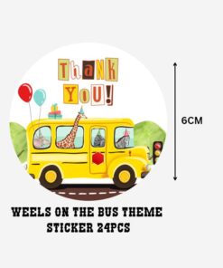 Weels On The Bus Theme- Return Gift/birthday decor Thankyou Sticker (6 CM/Sticker/Multicolour/24Pcs)