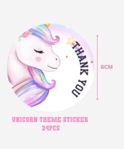 Unicorn Theme Model 2- Return Gift/birthday decor Thankyou Sticker (6 CM/Sticker/Mixcolour/24Pcs)