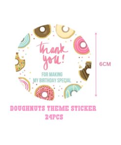 Doughnut Theme- Return Gift/birthday decor Thankyou Sticker (6 CM/Sticker/Mixcolour/24Pcs)