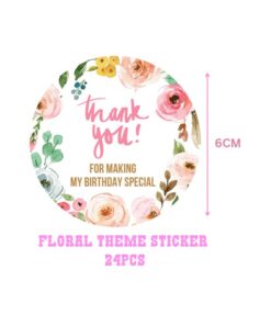 Floral Theme – Return Gift/birthday decor Thankyou Sticker (6 CM/Sticker/Mixcolour/24Pcs)
